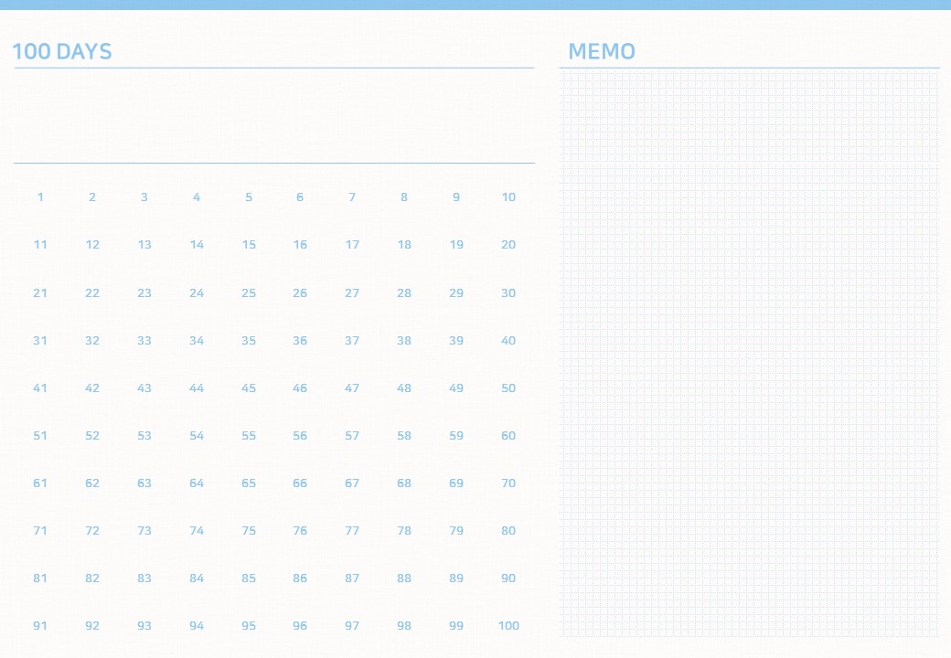 마지막으로 도형삽입하고 채우기를 통해 종이 질감을 넣어줬습니다. 종이 질감을 어떻게 만드는지에 관해서는 이전 가이드 편에 여러 번 언급되었으니까 참고해주세요. 이렇게 굿노트 스터디 플래너 디데이 100일 계산하는 형식으로 만들어 봤는데요. 이 속지가 마음에 드신다면 아래를 참고해주세요. 공유 문서 링크를 걸어두어서 무료로 받으실 수 있습니다.