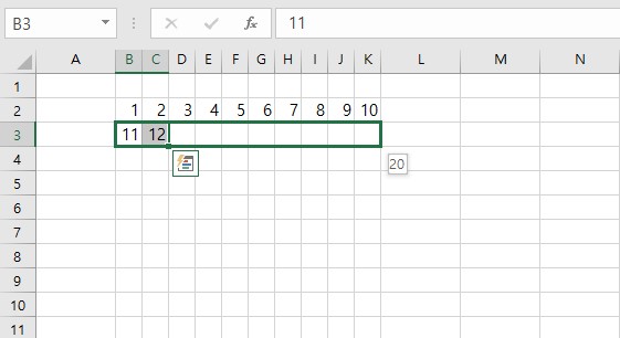 엑셀을 사용하시는 분들은 대부분 알고 계시는 내용이라, 이미 알고 계신다면 이 부분을 보지 않으셔도 좋습니다. 숫자 배열을 2~3개 쓴뒤로 드래그하시면 규칙에 따라 자동으로 숫자가 매겨집니다. 3~4번만 드래그하시면 1~100까지 금방 입력하실 수 있습니다.