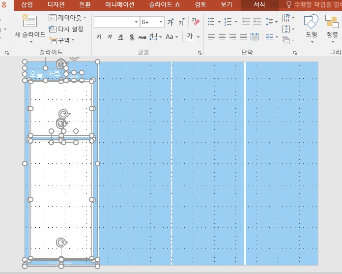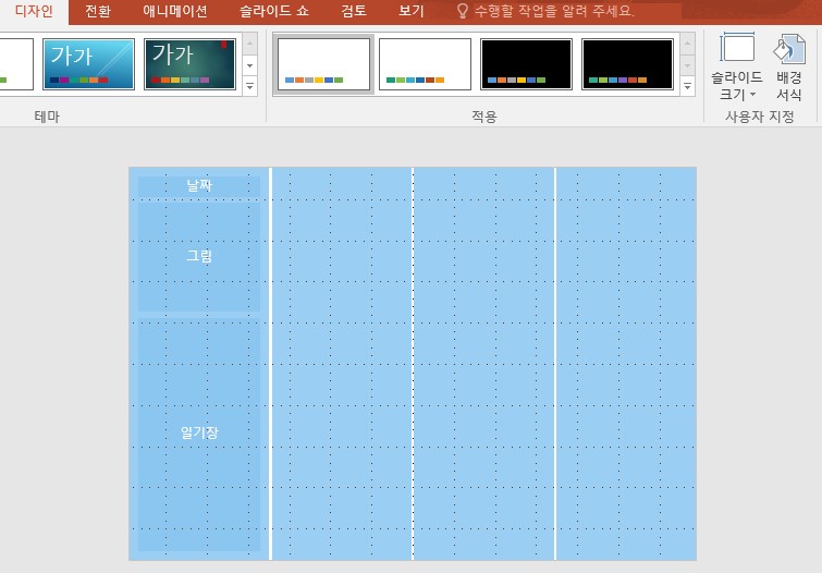 그렇게 일기장 양식을 모두 완성해서 나머지 4분할 중 나머지 3곳도 똑같이 복사해줬습니다.