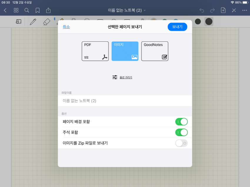 완성된 굿노트 속지 PDF 파일로 내보내기