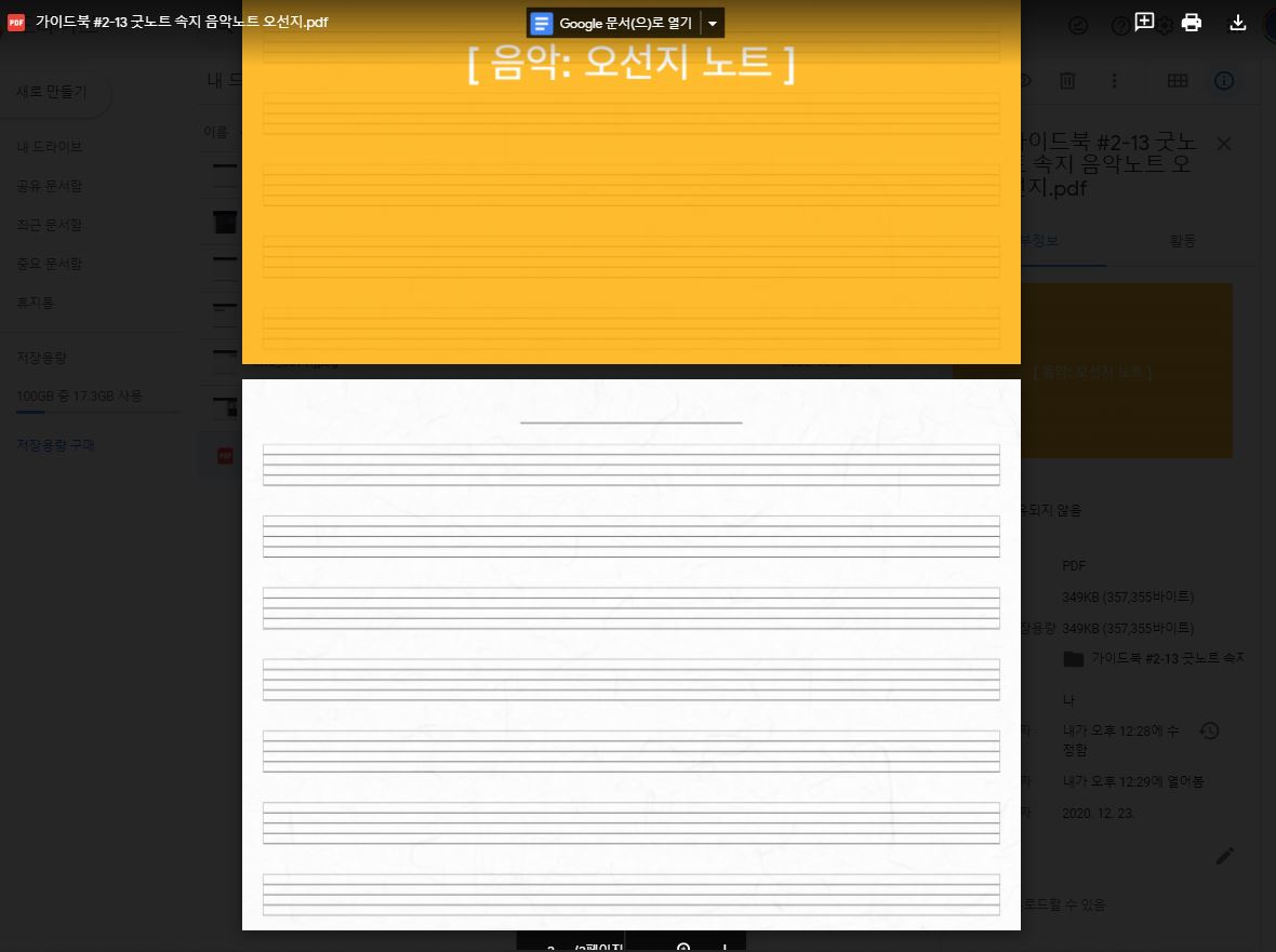 이렇게 만든 오선지는 아래 구글 드라이브 링크로 공유 문서화했습니다.