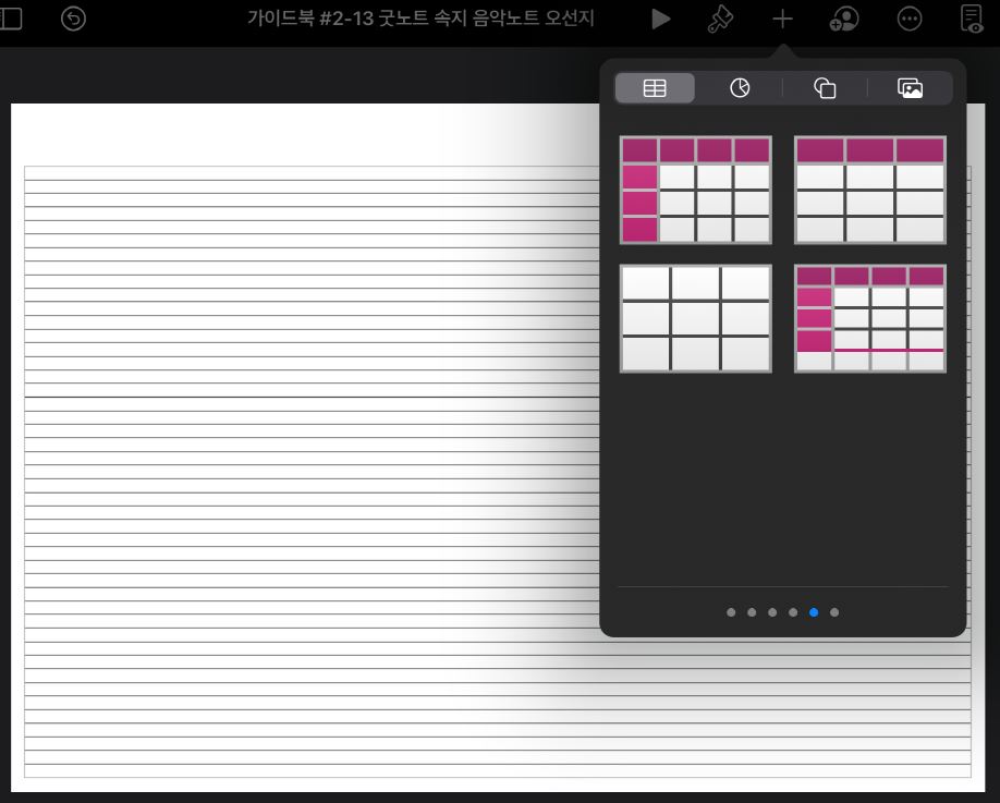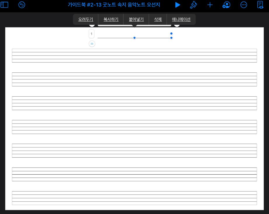 이번 가이드 편에서는 키노트를 이용해서, 음악노트(오선지)를 만들어 볼 겁니다.