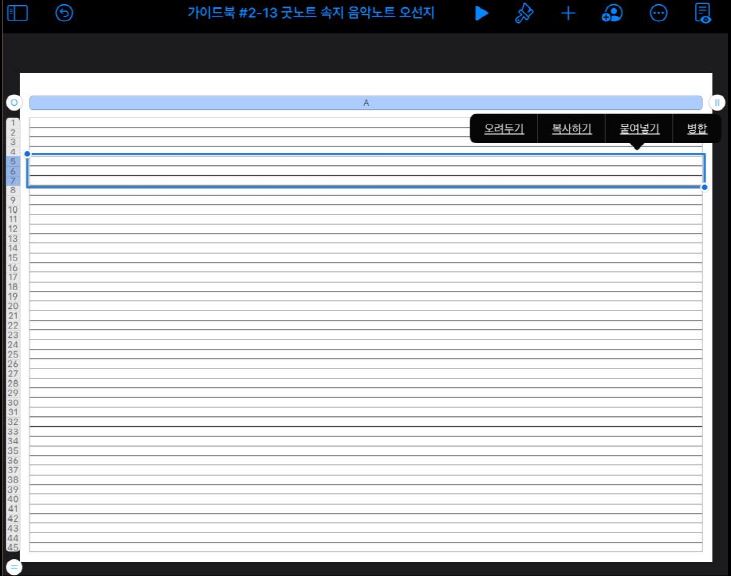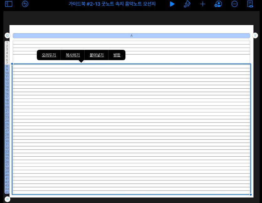 2. 키노트 셀 병합으로 오선지 여백 만들기