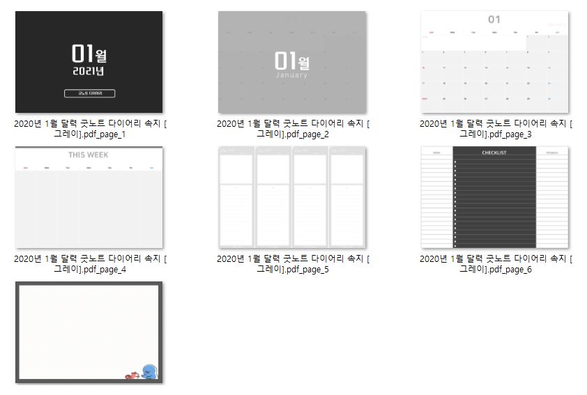 다크-그레이 색상도 구성은 똑같습니다. 아래 미리보기를 통해 간단히 살펴보시고 마음에 드는 속지로 다운로드하시면 됩니다.