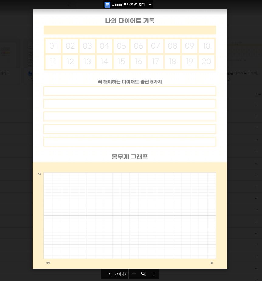 다이어트 속지 1 페이지당 20일로