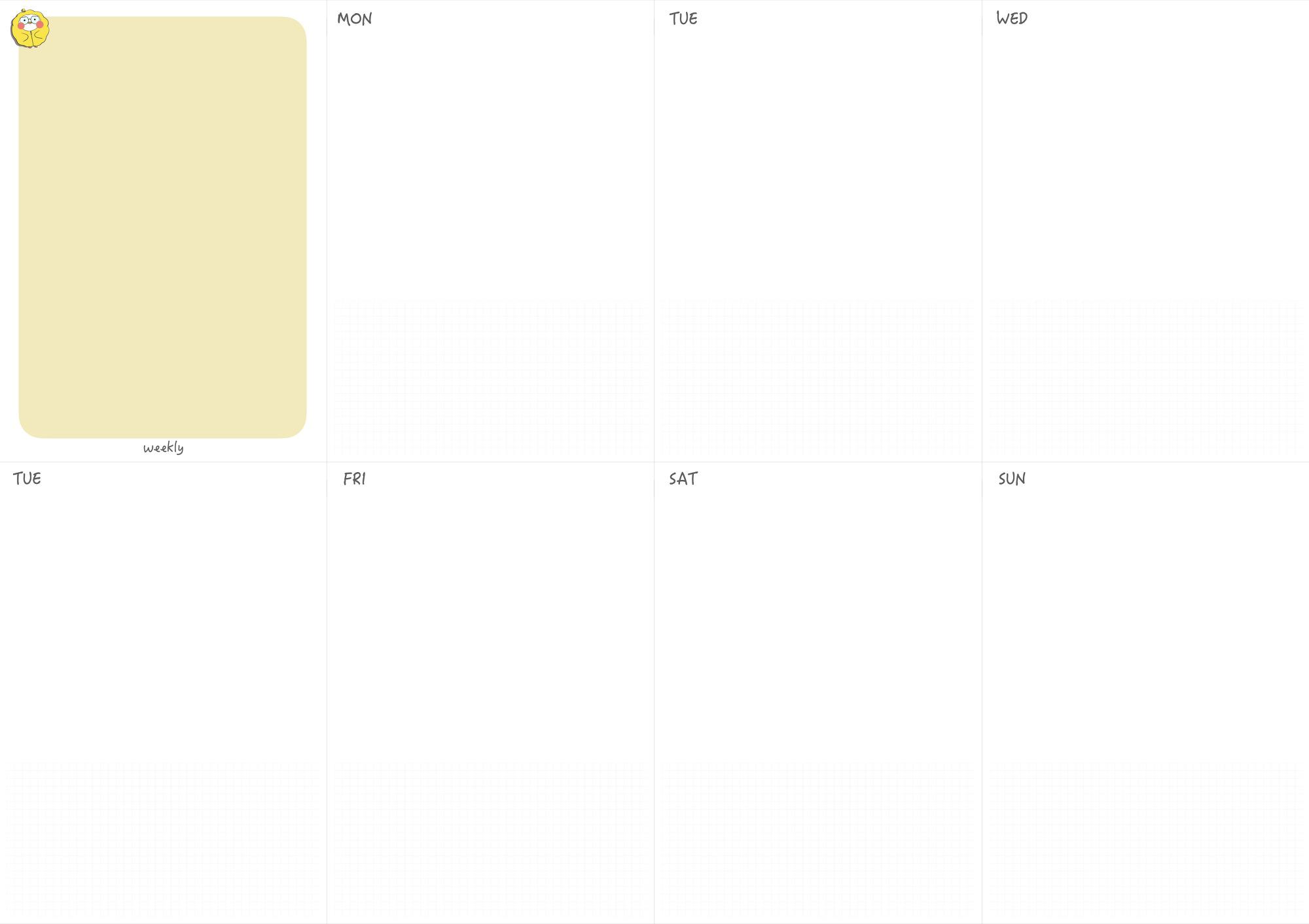 아래에 위클리 플래너 서식으로 활용할 수 있는 서식을 만들었습니다.
